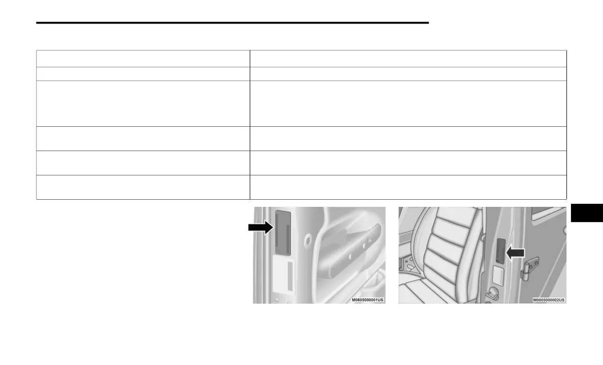 Example Tire Placard Location (Door) Example Tire Placard Location (B-Pillar)