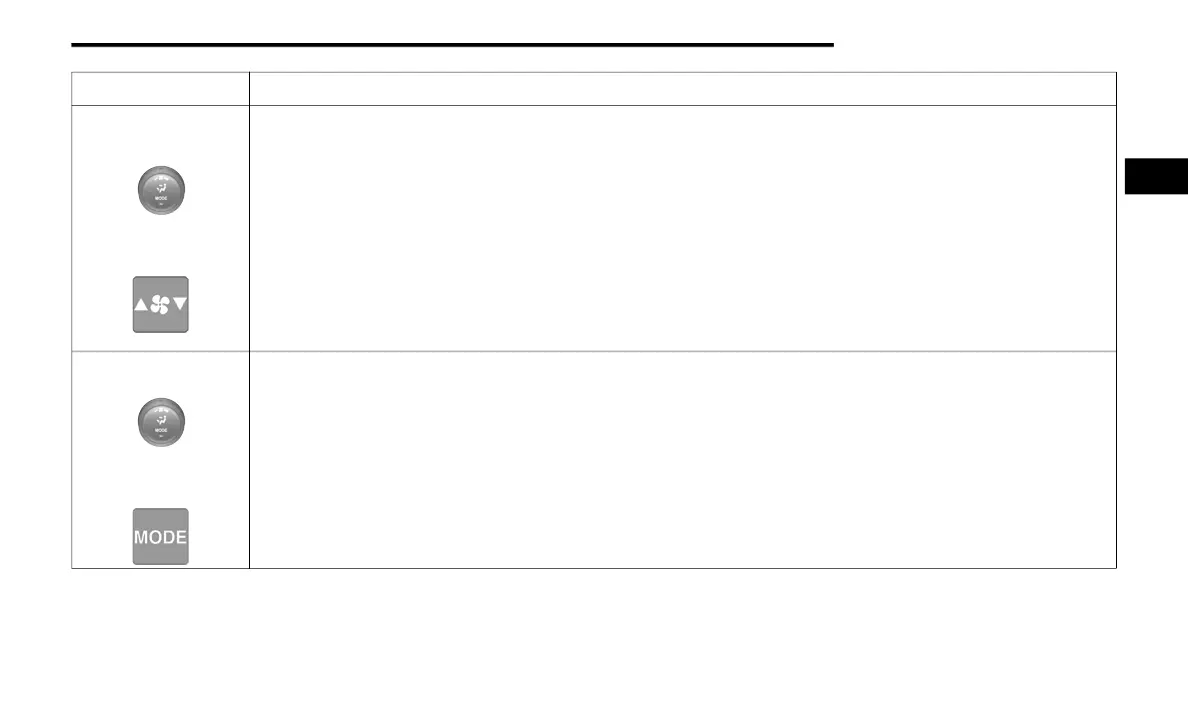Touchscreen: Press one of the “MODE” buttons to change the airflow distribution mode.