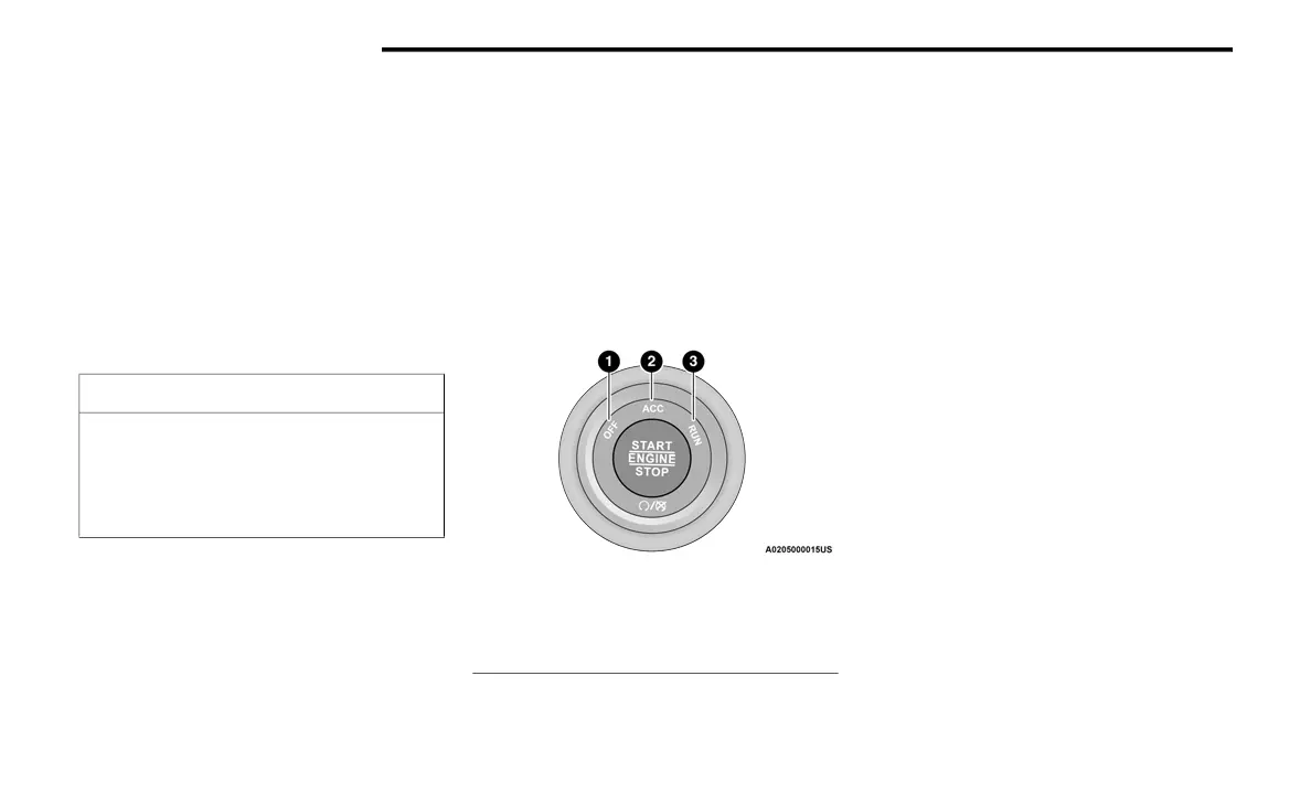 The START/STOP ignition button has several