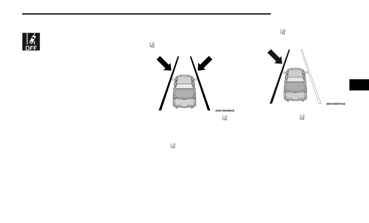 When the LaneSense system is on, the Lane-