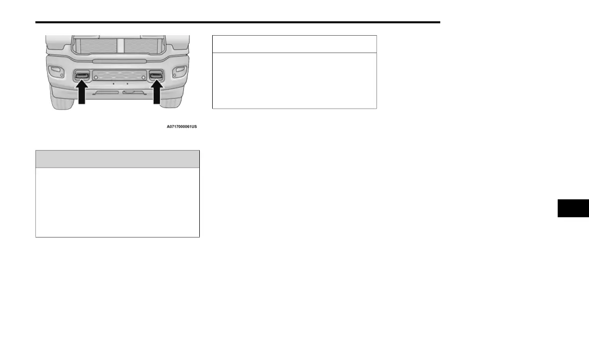 tow hooks. Tow straps may become disen-