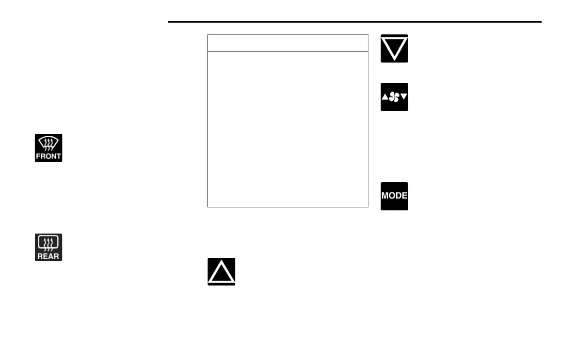 Front Defrost mode setting. Air comes