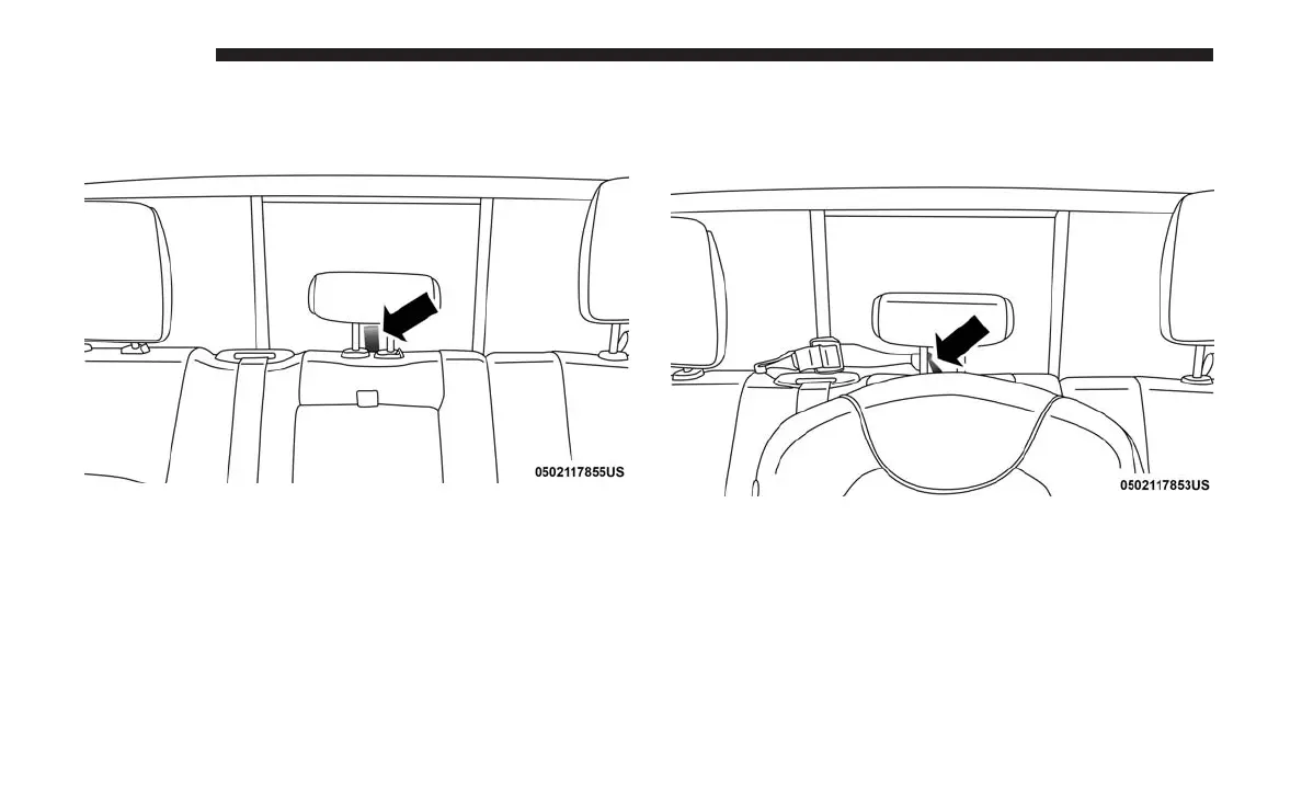 1. Raise the head restraint and reach between the rear seat