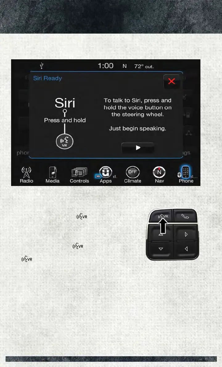 1. Pair your Siri enabled device to the vehicles sound system. Refer to “Uconnect