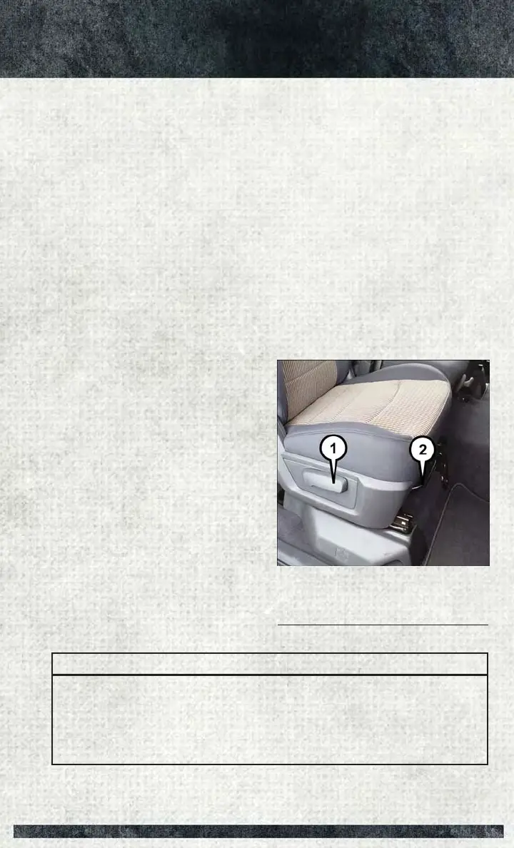 • Adjusting a seat while driving may be dangerous. Moving a seat while driving