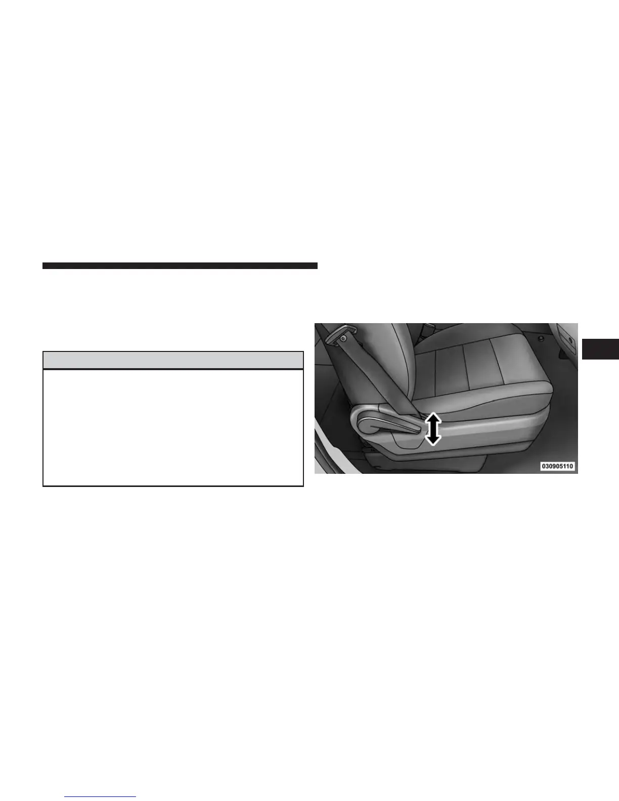 • Adjusting a seat while driving may be dangerous.