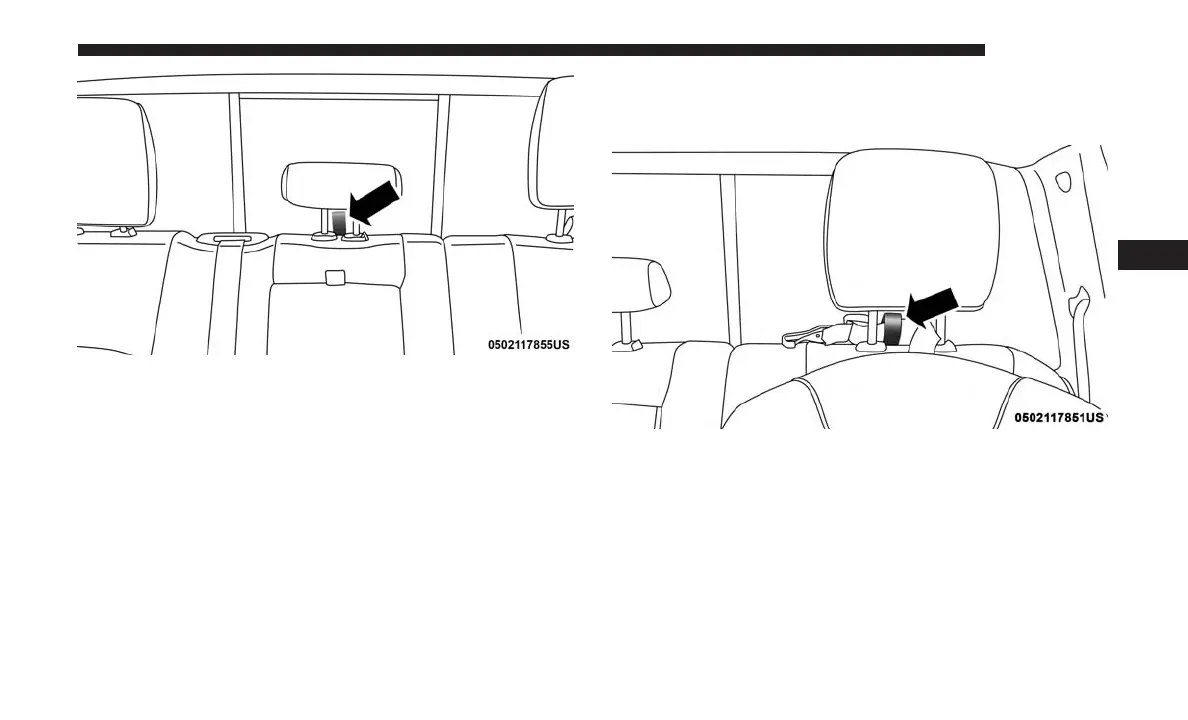 head restraint, through the tether strap loop behind the