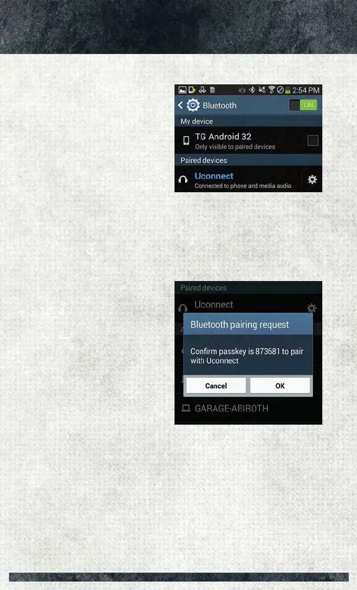 “Uconnect” from the mobile phone/audio device Bluetooth screen, and the