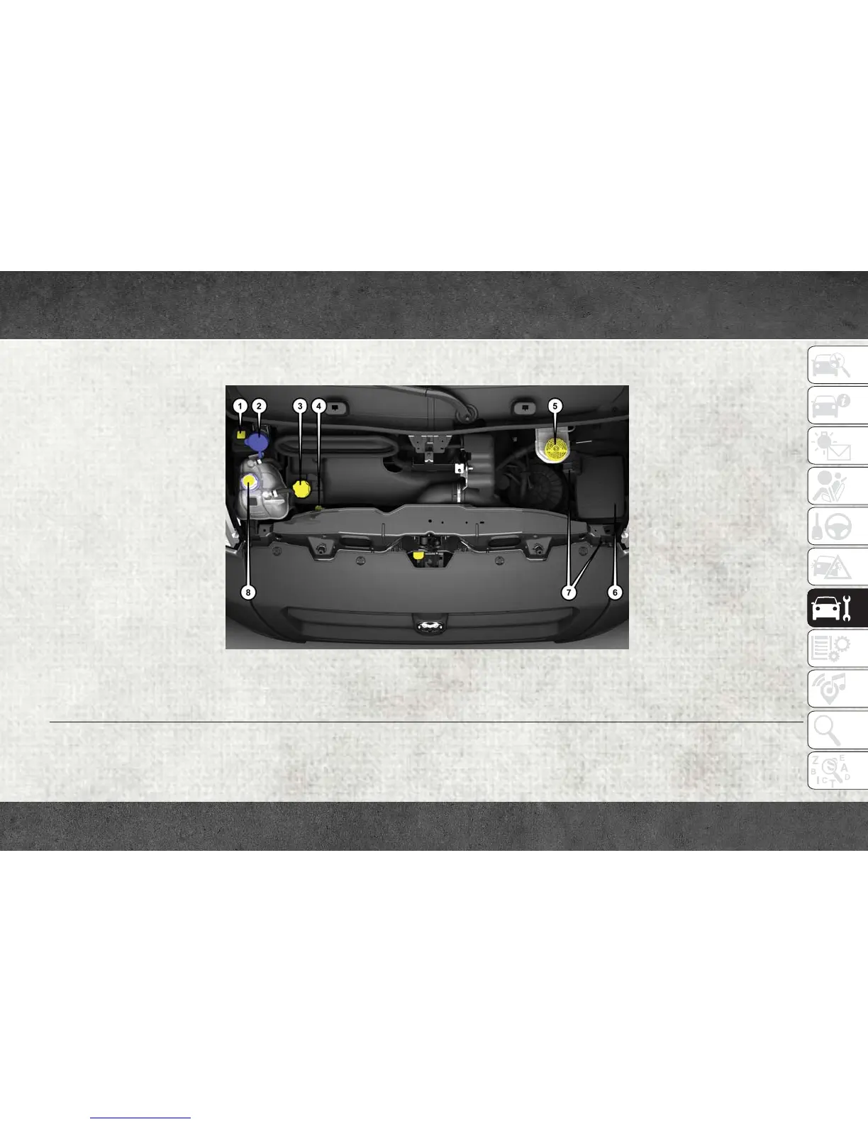 4 Engine Oil Dipstick 8 Coolant Reservoir