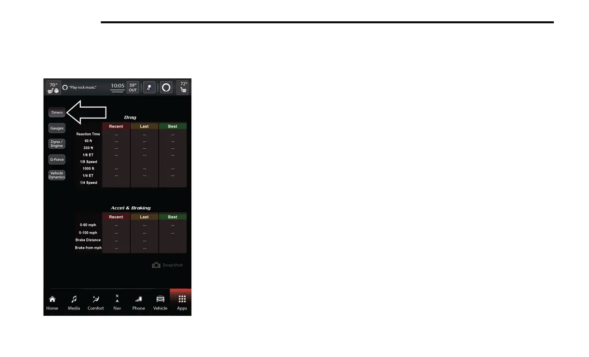 to view the Drag and Accel & Braking timers.