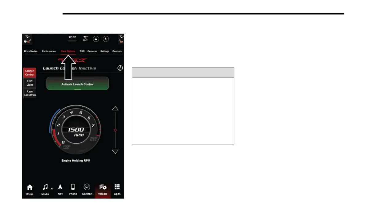 display the vehicle’s Launch Control screen. Within