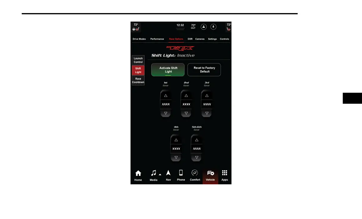 To actuate the Shift Light feature, press the Race