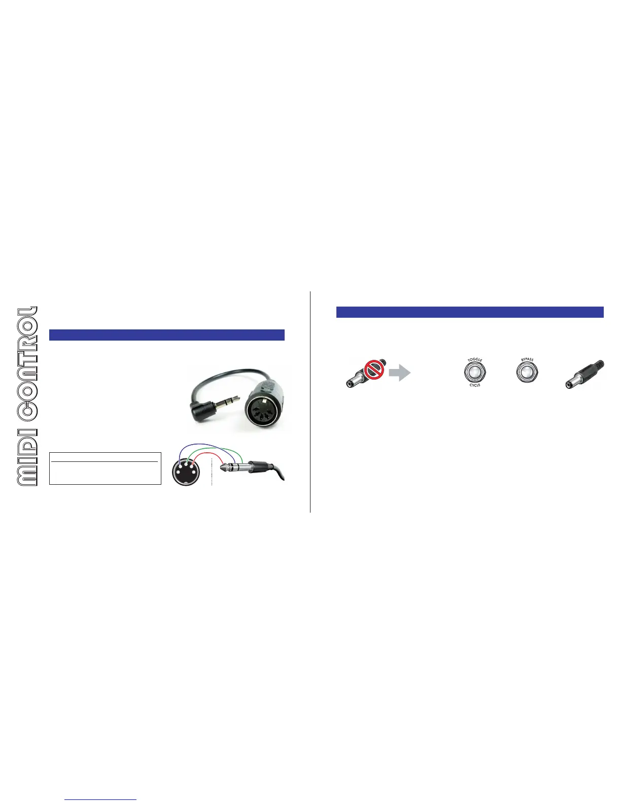 a MIDI controller, an adapter can be used or a custom MIDI cable can be made.