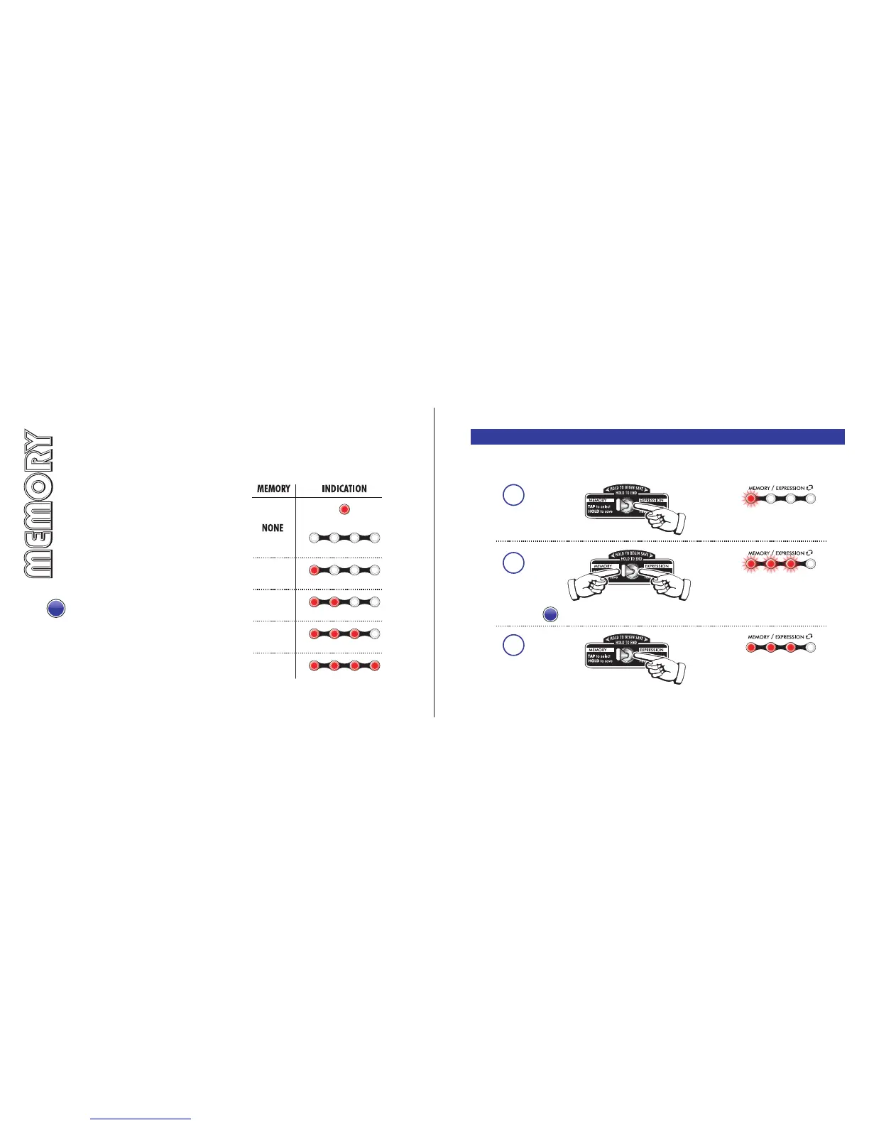 knob positions. Recall a memory position (Fig. 5) by tapping the left footswitch or the