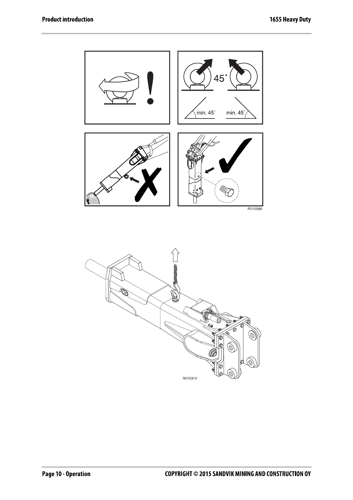Lifting devices must safely carry the working weight of the product. See “Hammer