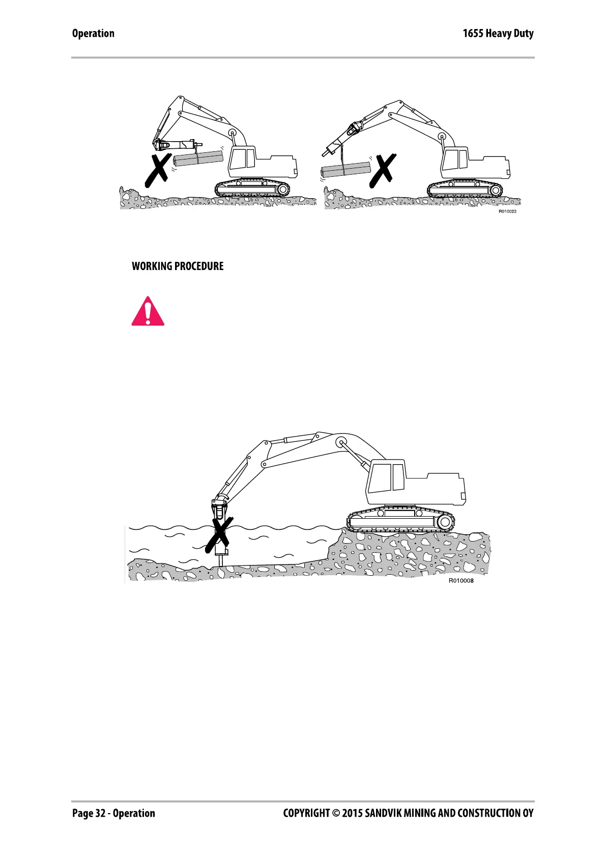 1. Prepare the carrier for normal excavation work. Move the carrier to the required