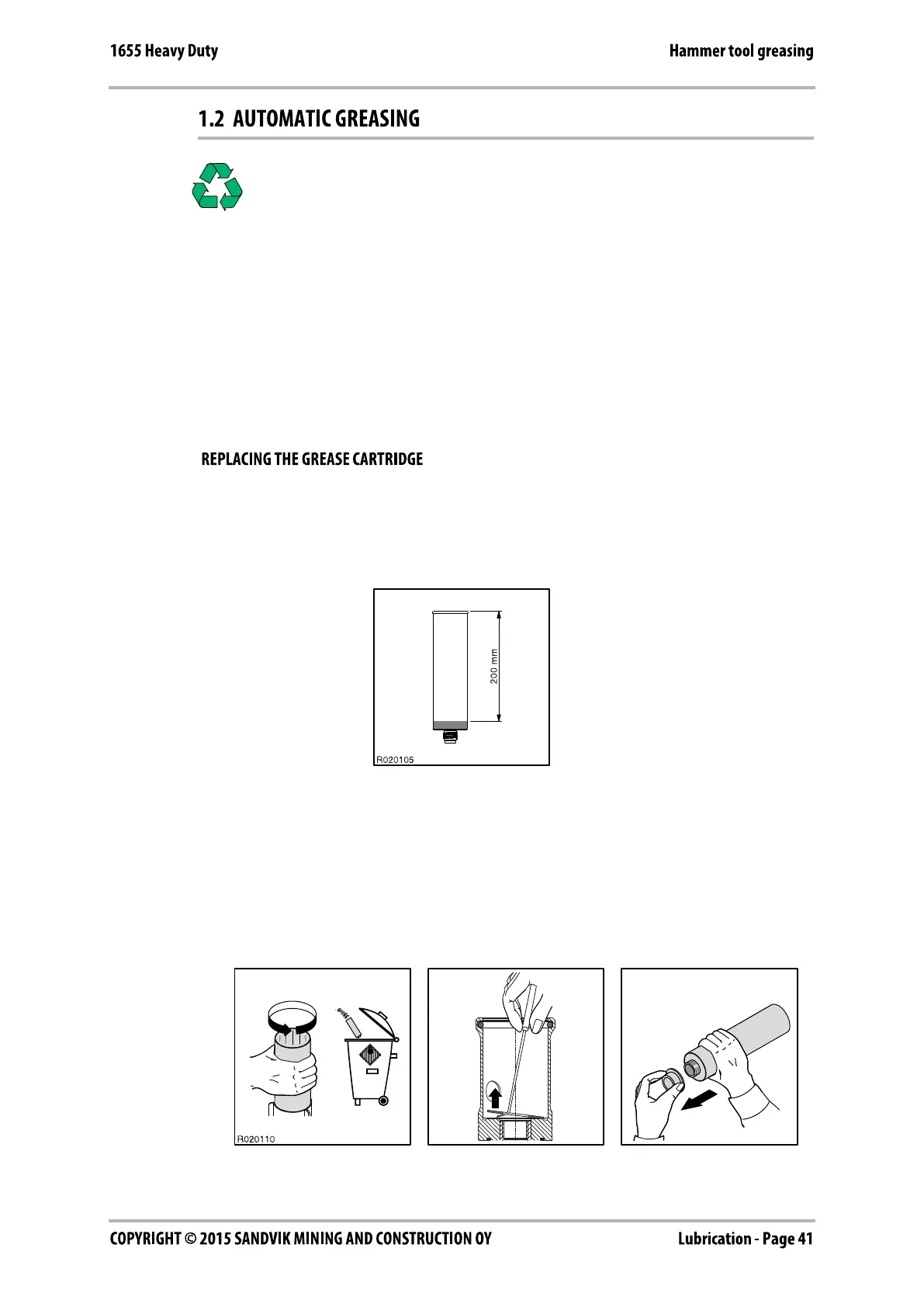 cartridge if the distance is more than 200 mm (7.87 in). The grease cartridge is