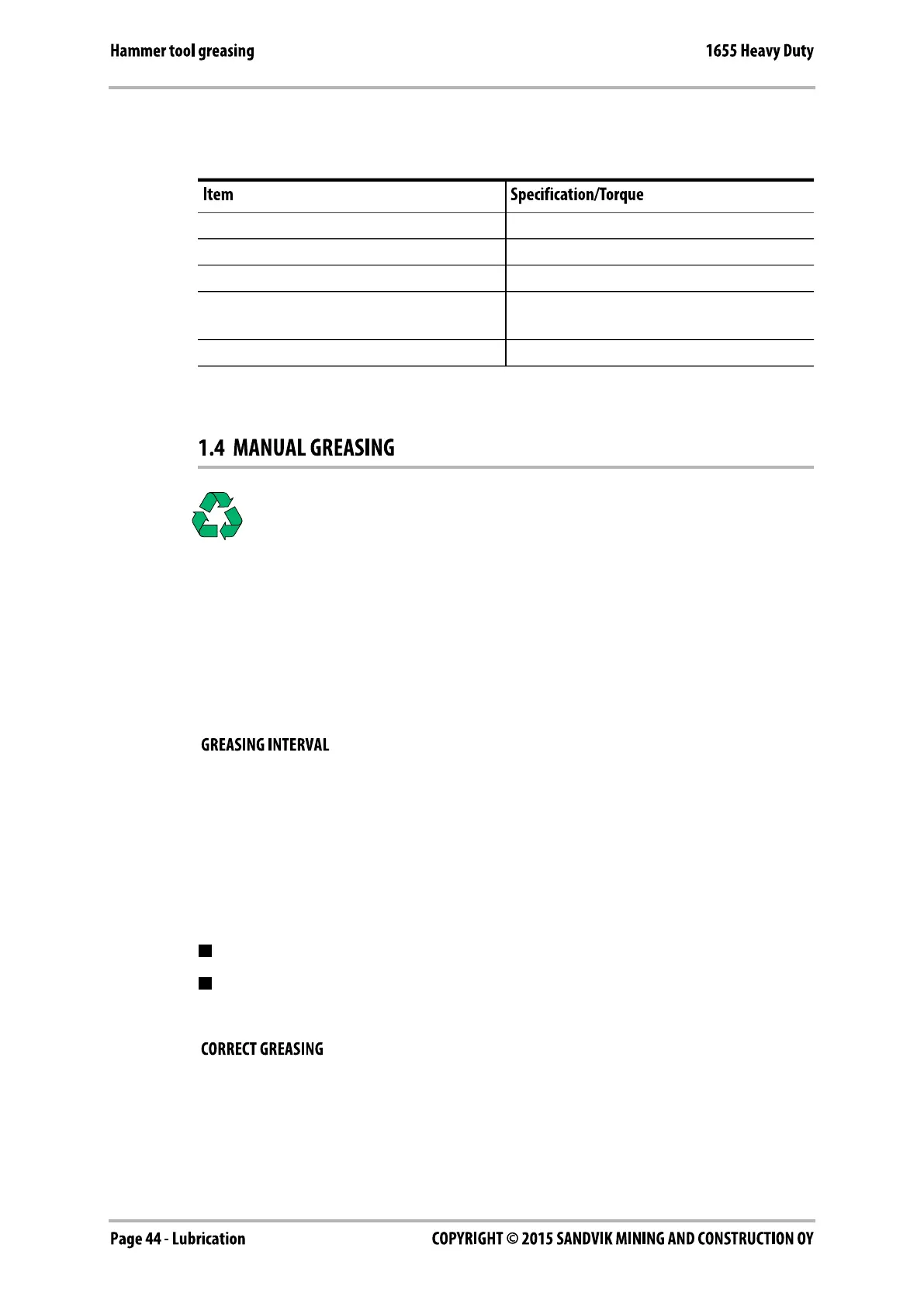 material (rock/concrete) to be broken. See “Recommended greases” on page 40.