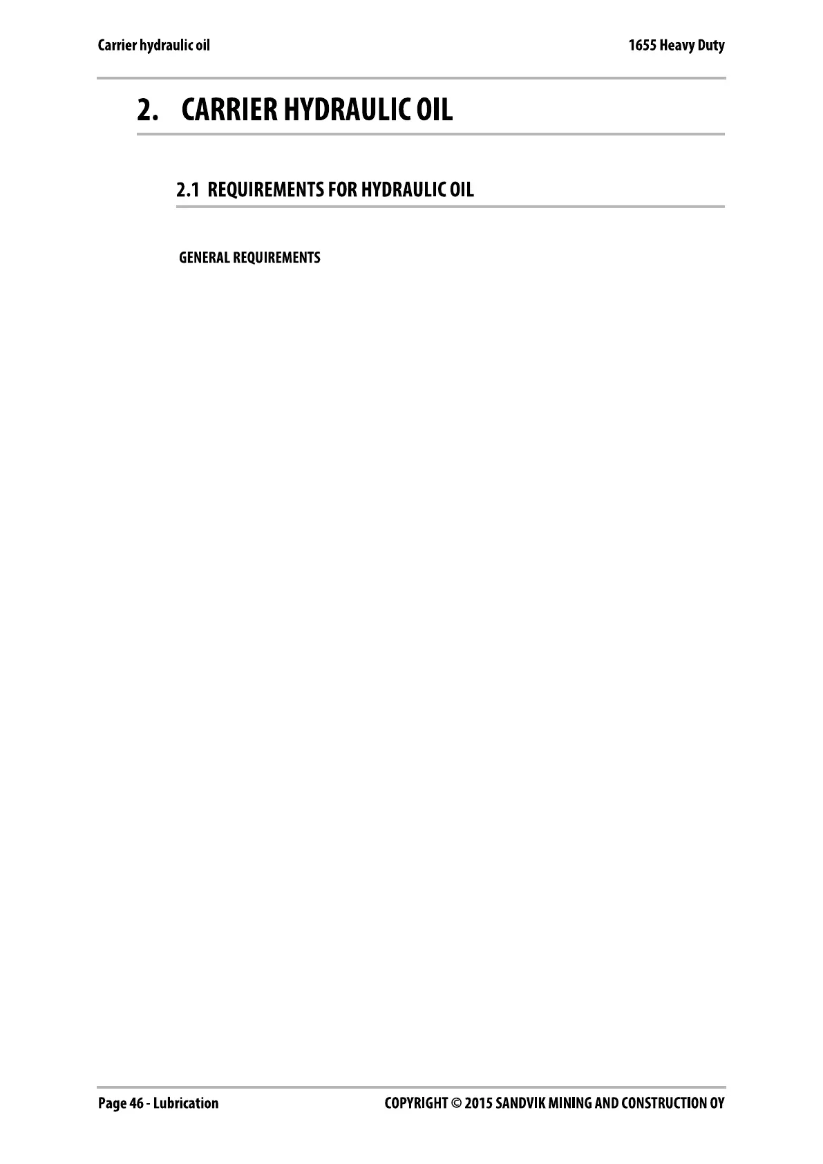 In general the hydraulic oil originally intended for the carrier can be used with this