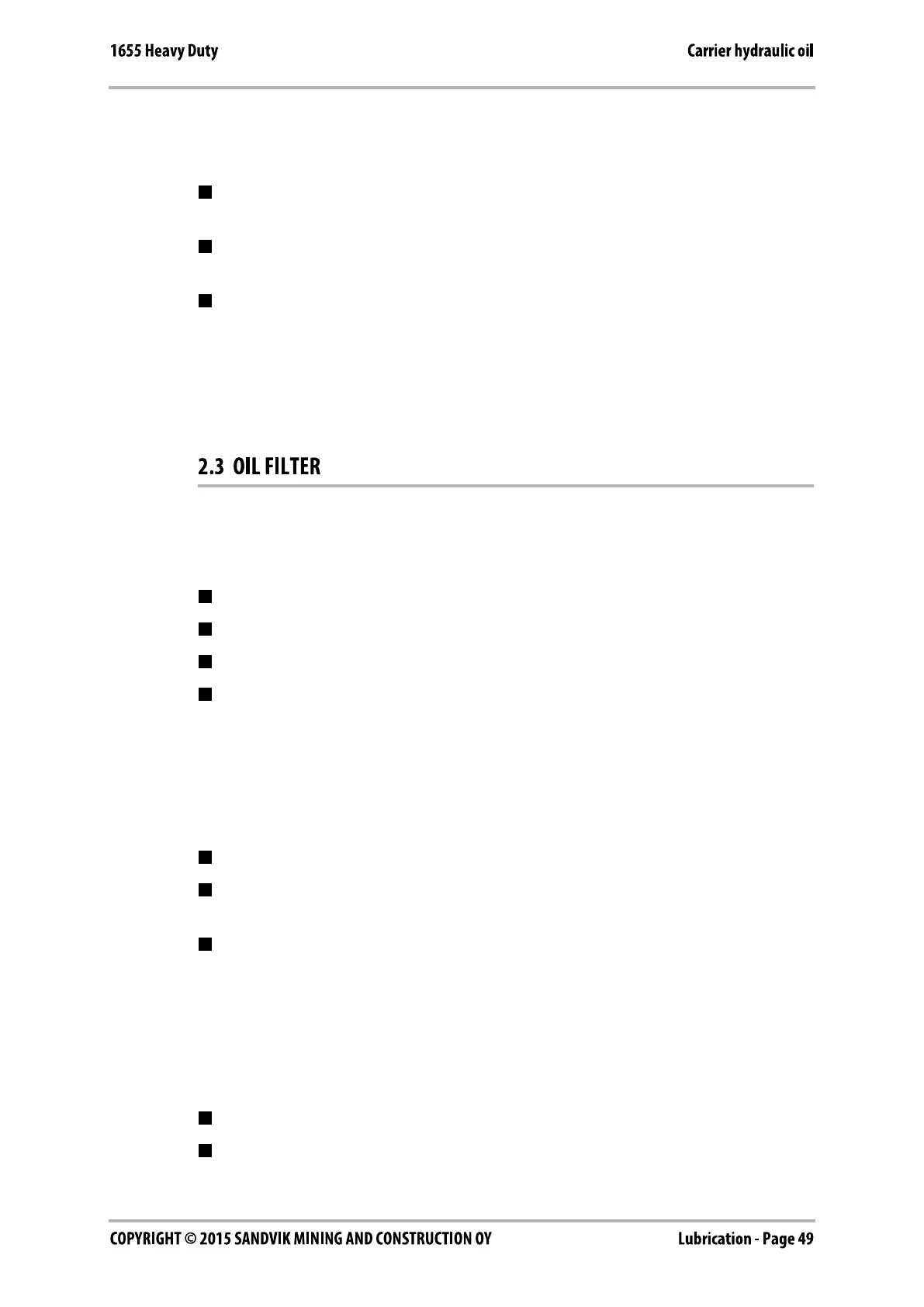 The oil filter must allow maximum particle size of 25 microns (0.025 mm).