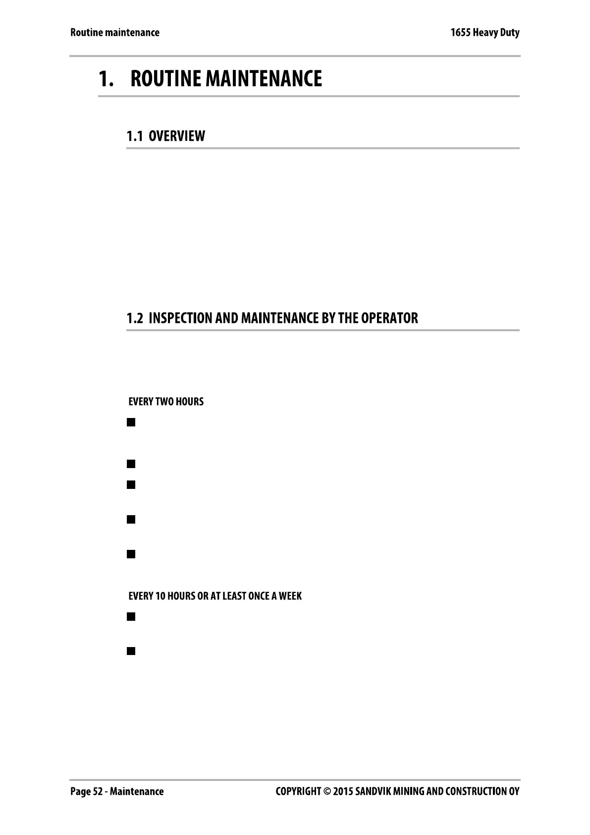 Note: The time intervals given refer to the carrier hours while the attachment is