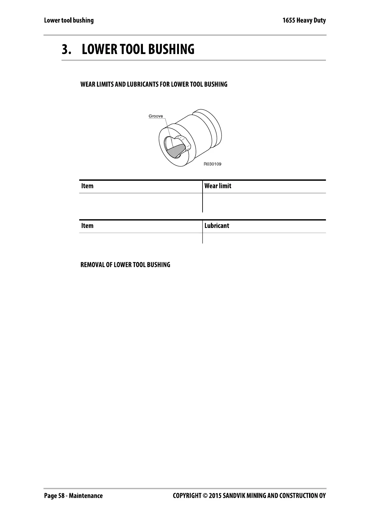 Tool bushing (worn out) Grease groove is worn out. Bushing