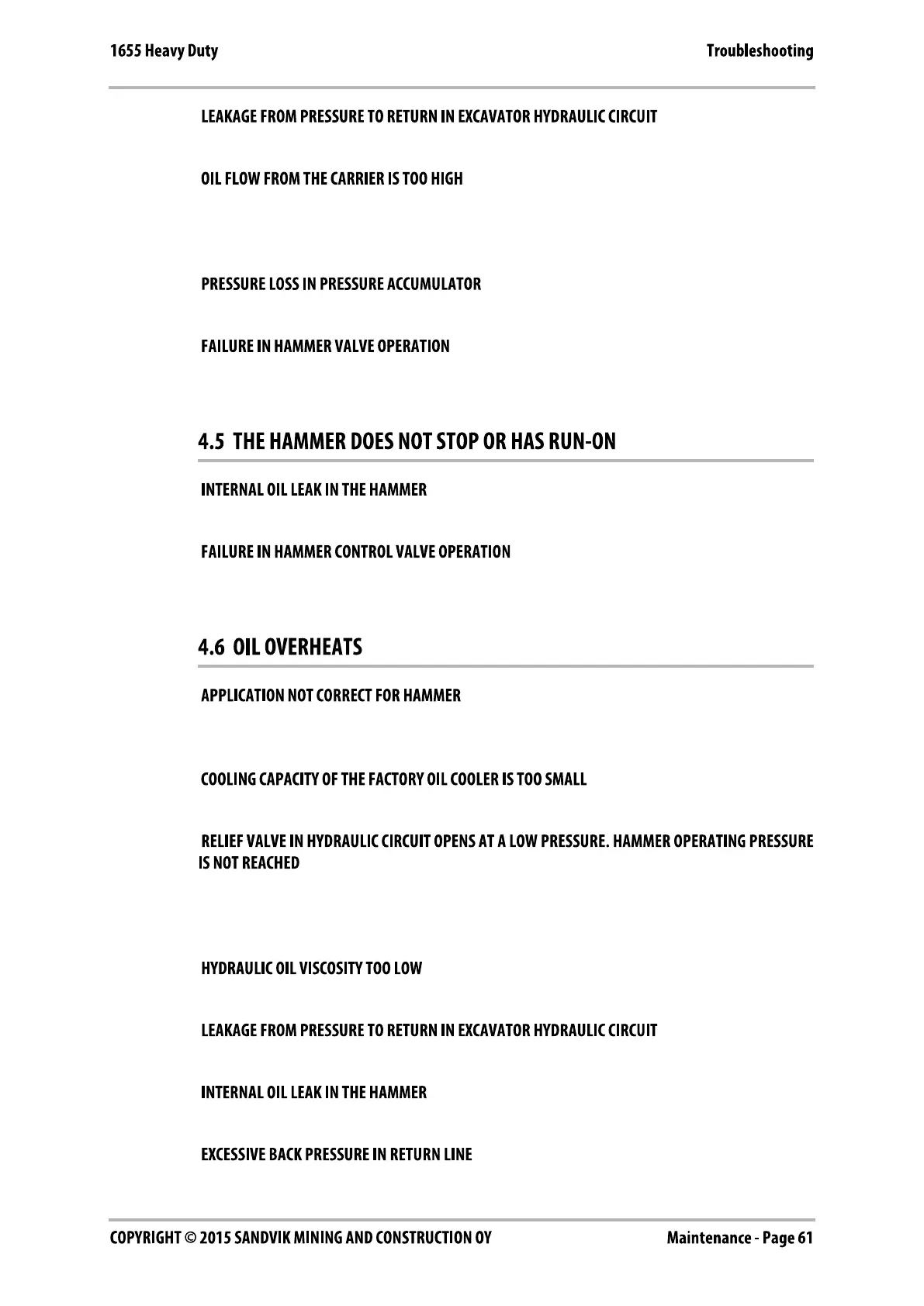 hydraulic circuit. Measure the high pressure in the hammer inlet line. Contact your