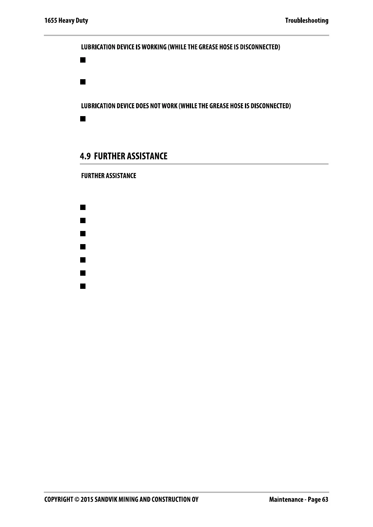 Hammer lubrication channel is blocked. The hammer must be serviced in an