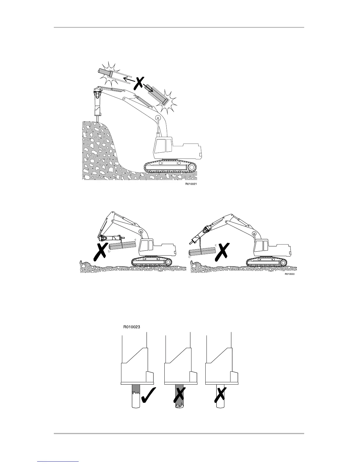 20. Do not operate the hammer with the carrier's boom, stick or bucket cylinders at