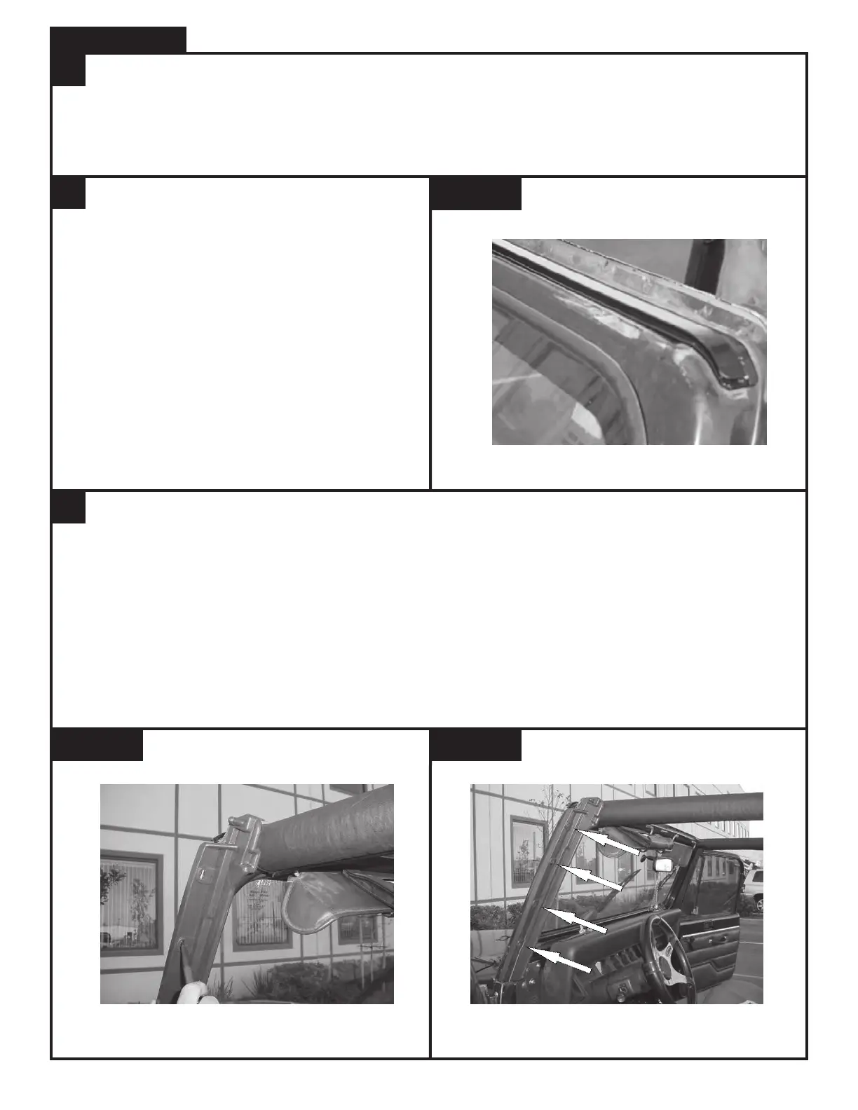 Repositionnez le pare-brise de la porte supérieure à la verticale et fixez-le à l’aide de la tôle incluse (4) - # 8 x