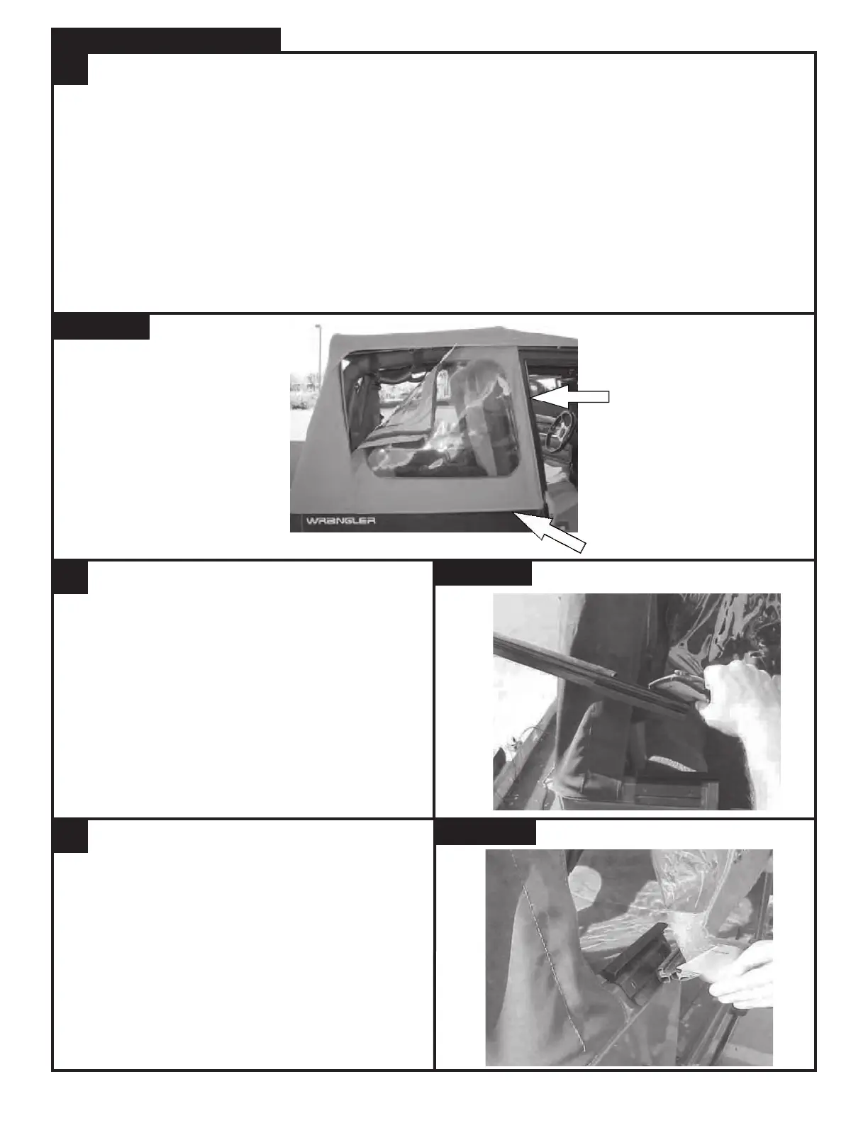 Insérez la bande de plastique sur le bas de la vitre latérale dans le rail de ceinture latérale.
