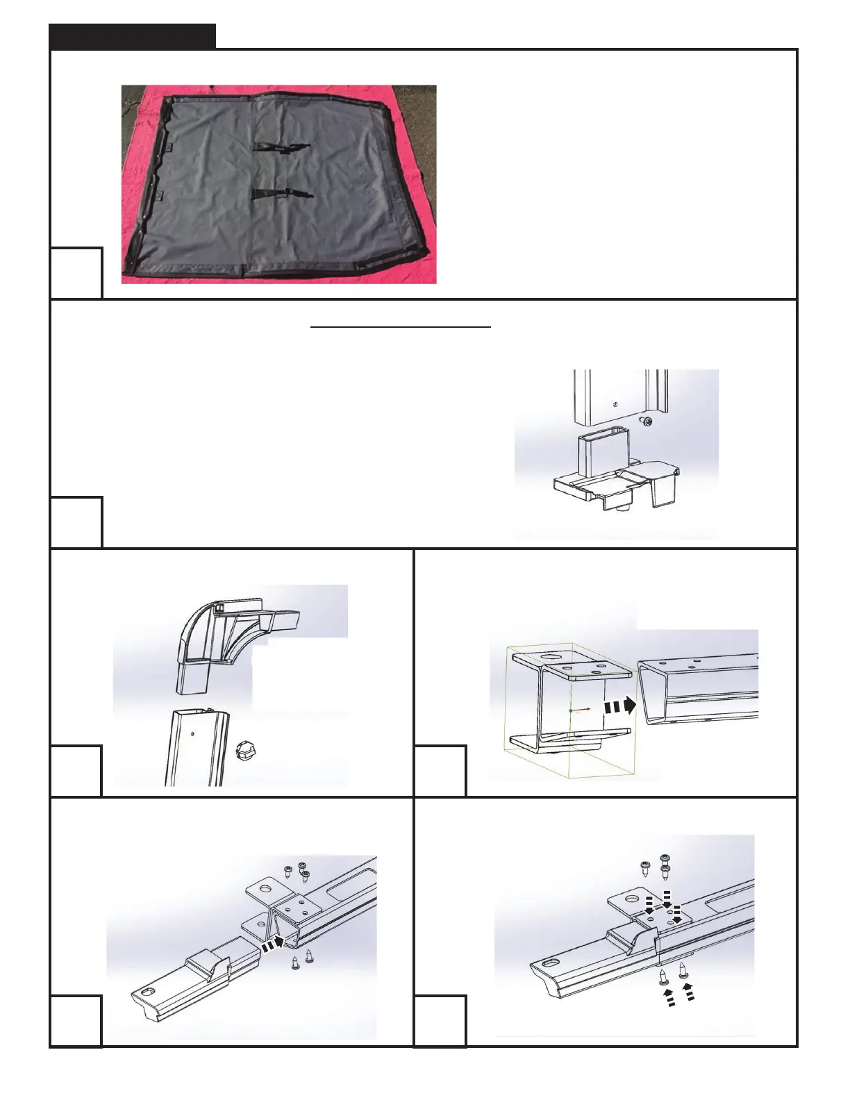 Slide driver’s side front metal bracket onto front section of door surround.Install driver’s side upper corner part with a small turn-knob bolt.