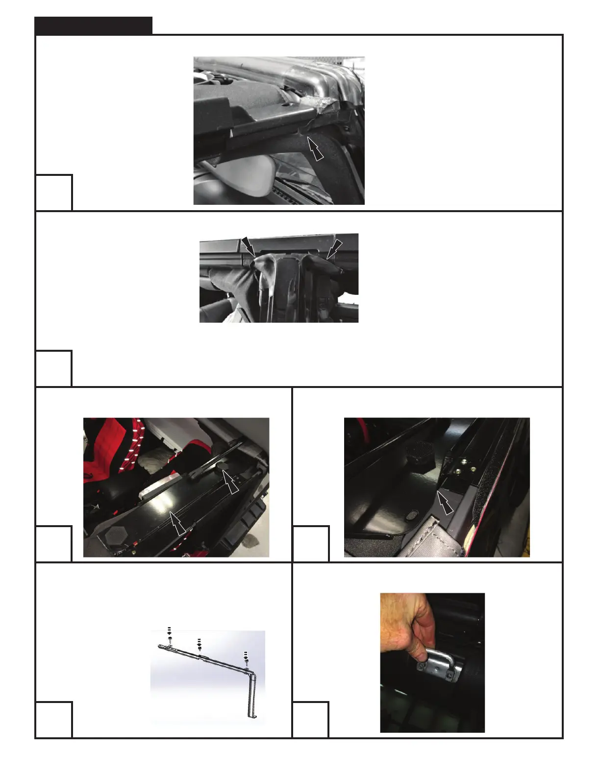 Fit door surround mount plate on top of door surrounds. Secure the mount plate to the roll cage using turn-knobs in