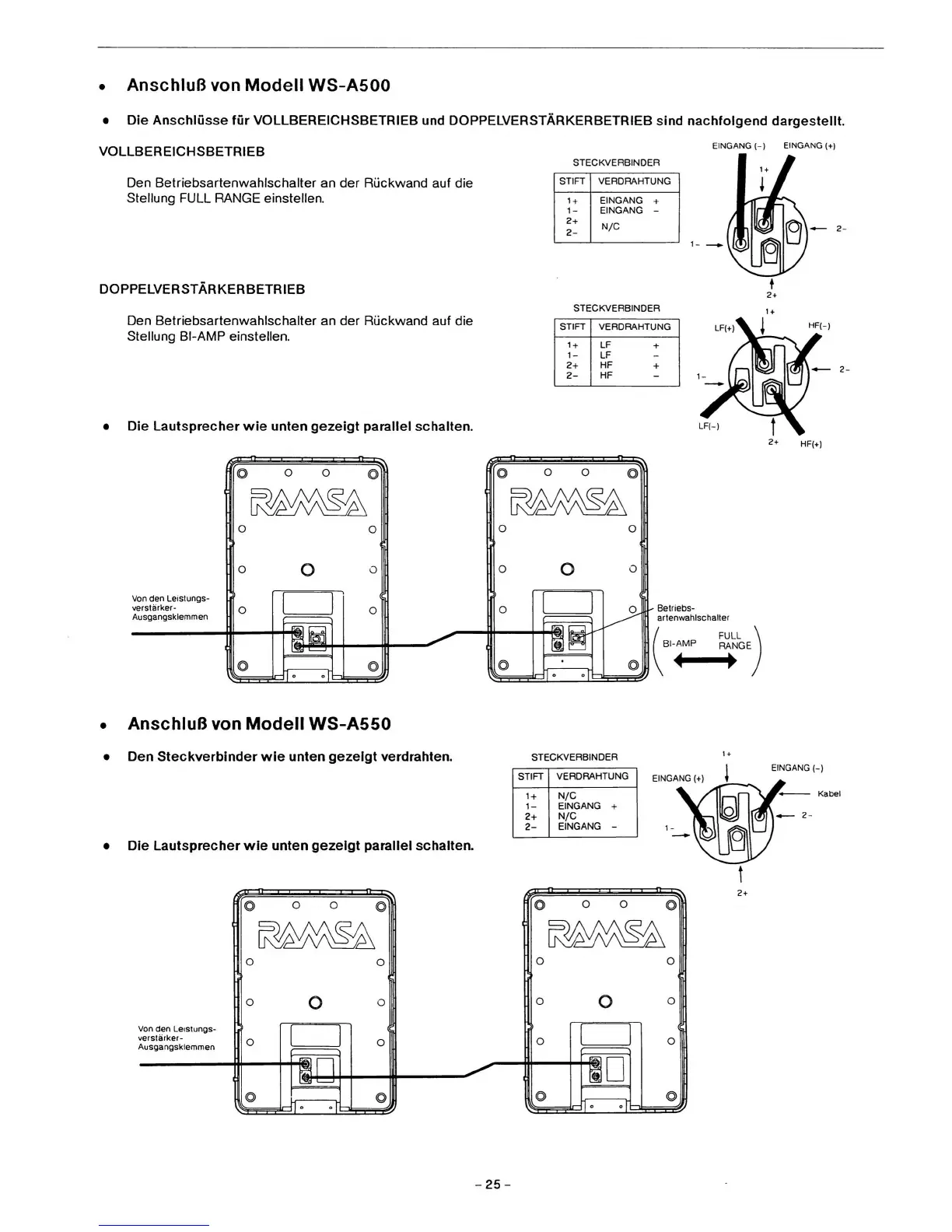 • Die Anschlüsse für VOLLBEREICHSBETRIEB und