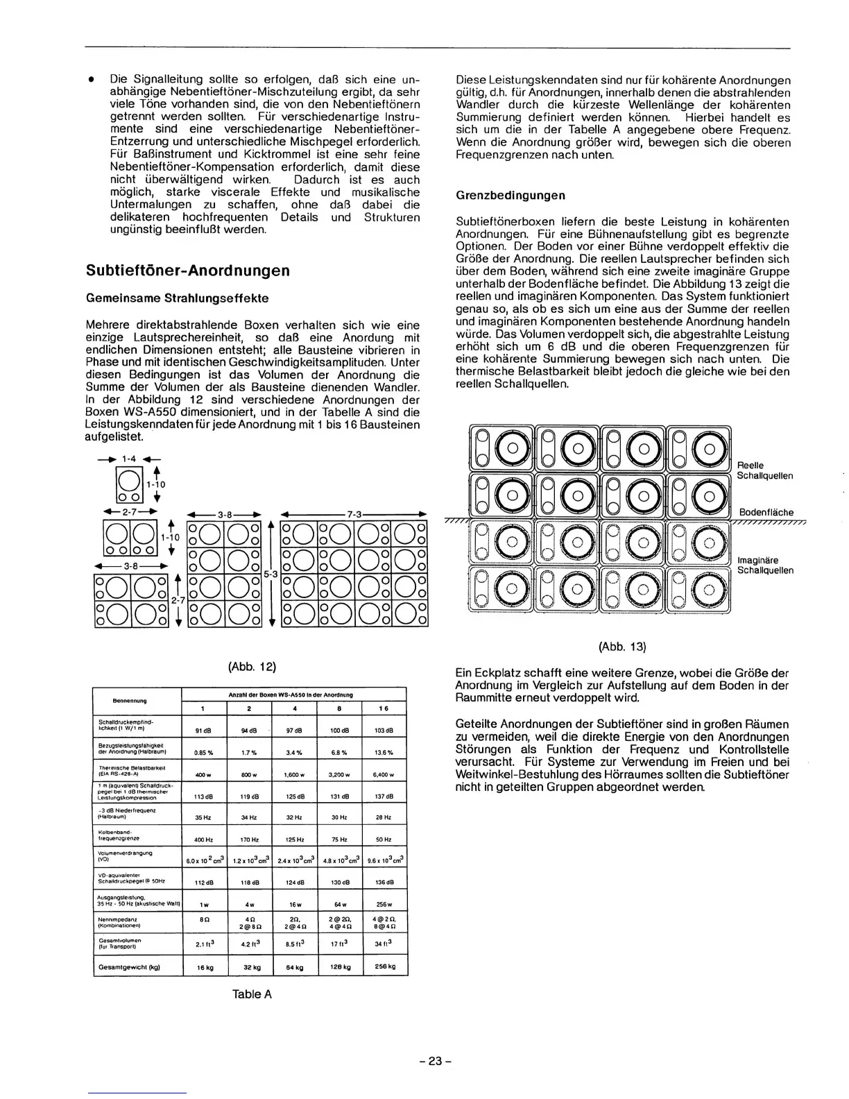 Boxen WS-A550 dimensioniert, und in der Tabelle A sind die