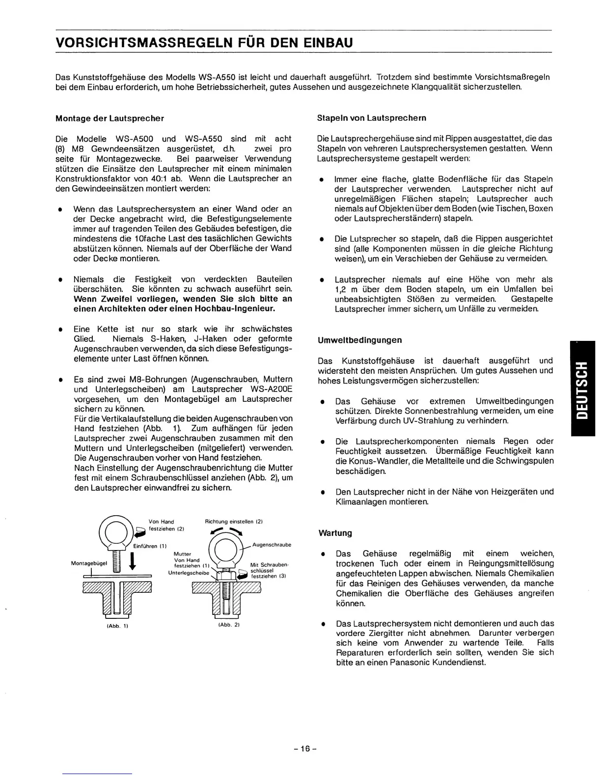 bei dem Einbau erforderich, um hohe Betriebssicherheit, gutes Aussehen und ausgezeichnete Klangqualität sicherzustellen.