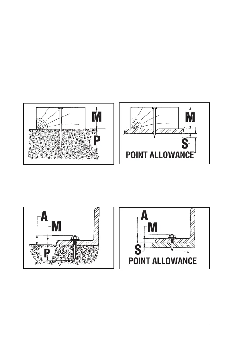 Shank Length = of Material + of Steel + 1/4" min. pt.