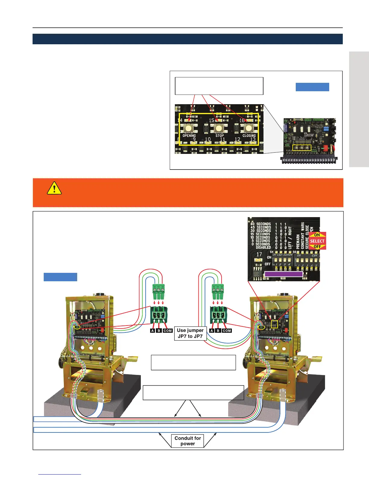 Three pushbuttons are located under the dip switches for operation of the gate (see Figure 15). The opening, stop and