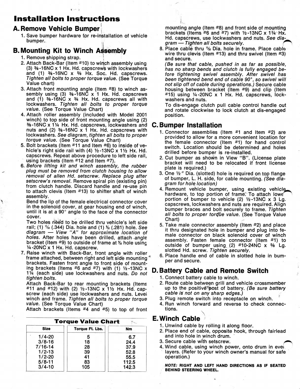 Ramsey Electronics 2000 - Installation Instructions; Remove Vehicle Bumper; Mount Kit to Winch Assembly; Bumper Installation