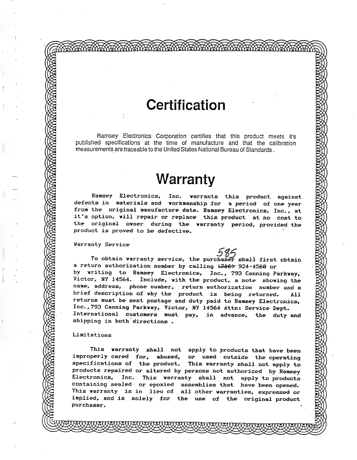 Ramsey Electronics COM 3 - Warranty Information; Obtaining Warranty Service; Warranty Exclusions