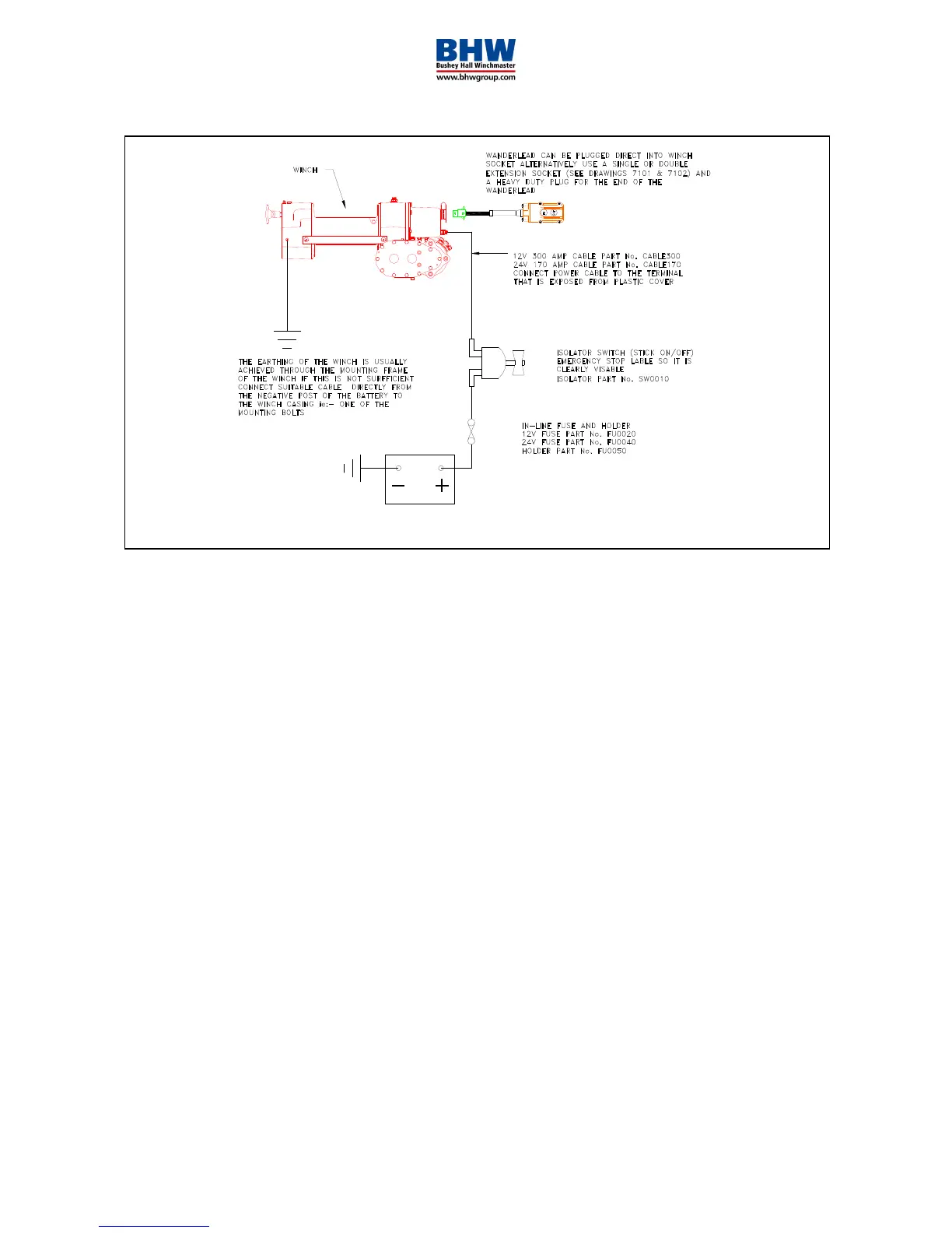 Whenever possible, earth the winch back to the battery. If this is impractical and earth is to