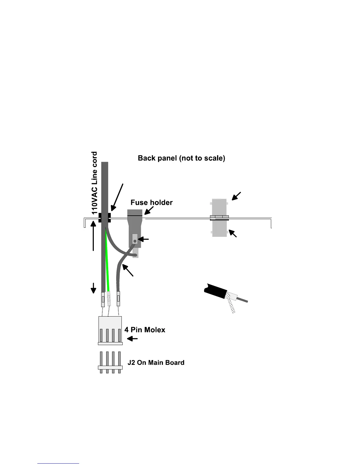 2K. Thread about 8” of the line cord through the ‘AC Input’ hole on the