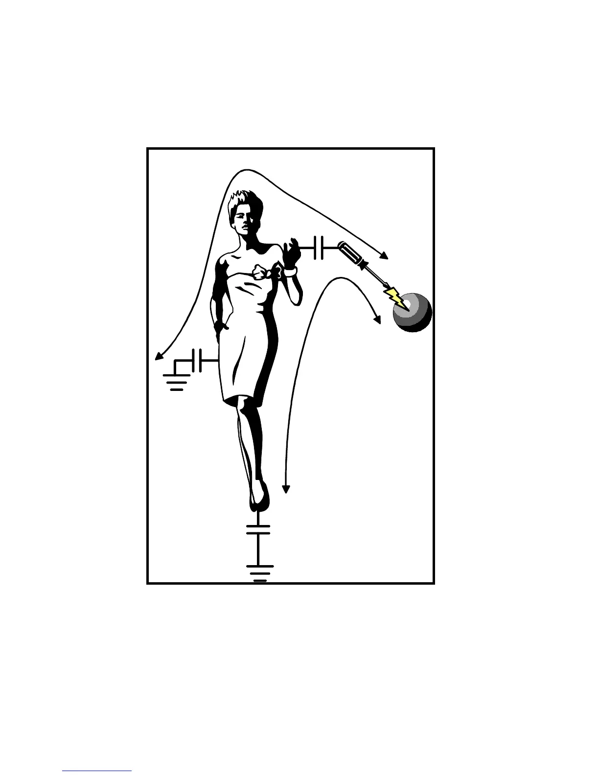 acting like a capacitor. The plates of the capacitor are your hand and the