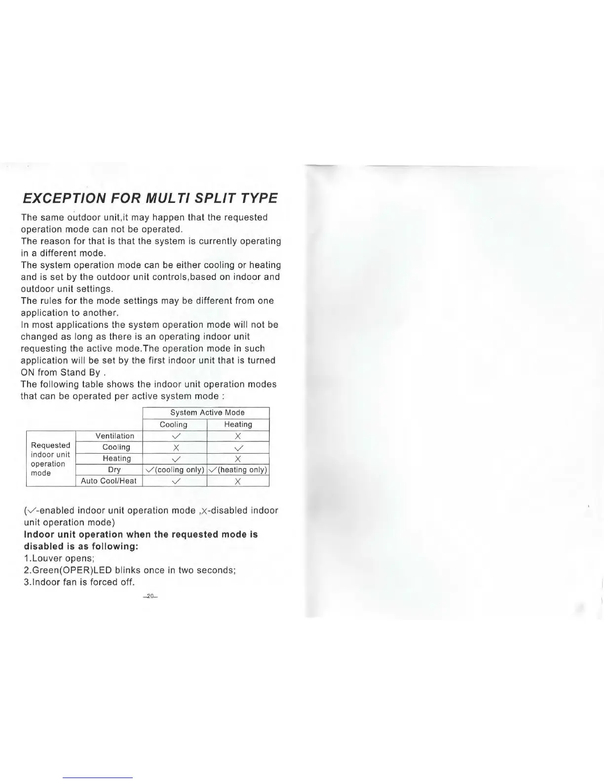 Indoor unit operation when the requested mode is