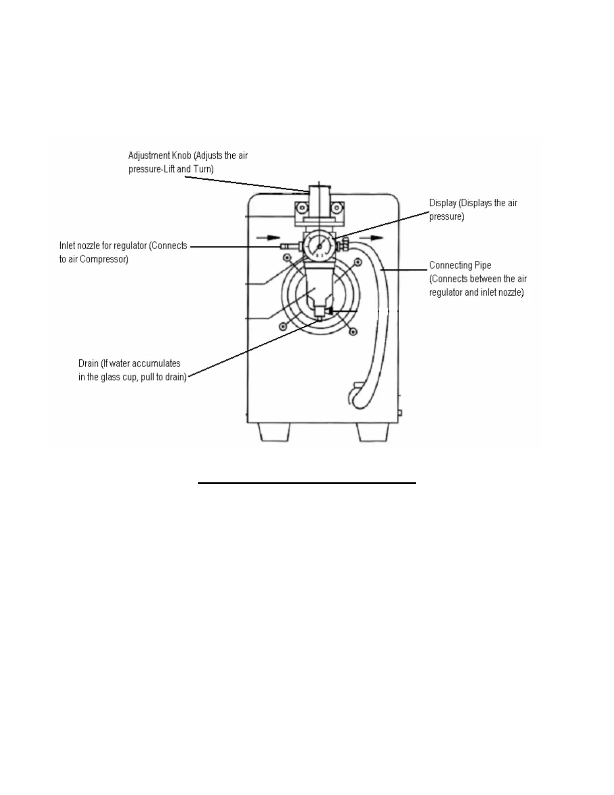 and “gas in” nozzle of your machine. The filter/regulator is equipped with an adjustment