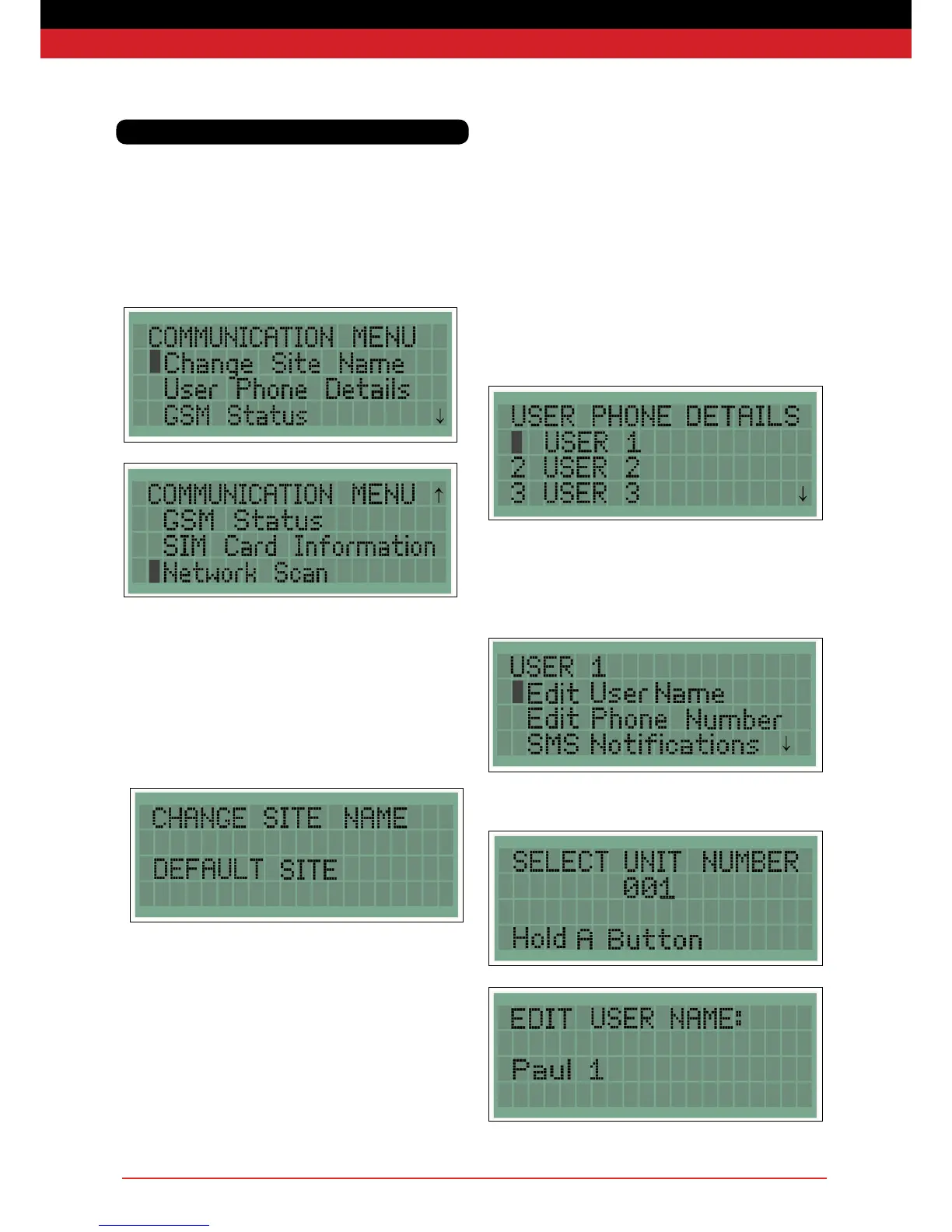The user phone details allows up to six users’ names and telephone
