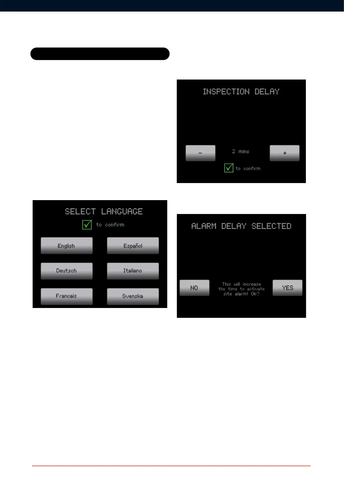 such as Language, Inspection Delay and Pre-Alarm mode options.