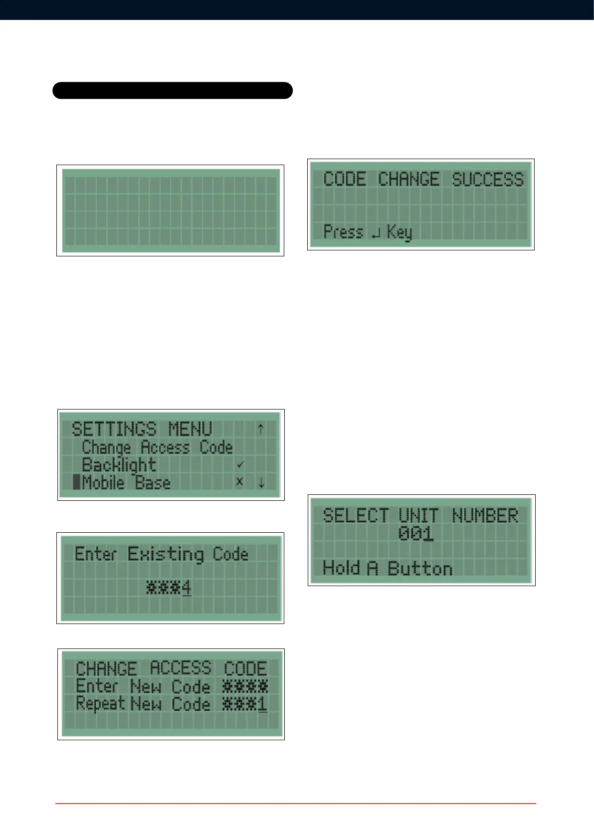 To change the access code, navigate down the Settings Menu until the