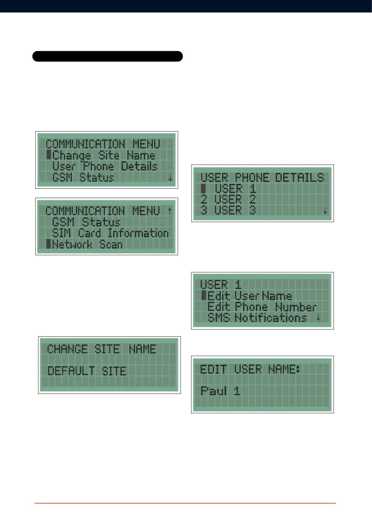 The user phone details allows up to six users’ names and telephone
