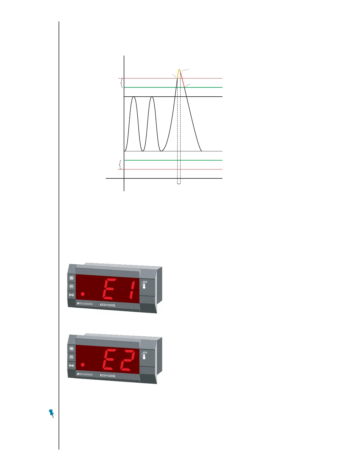 During an evaporator sensor failure, the optional display shows E2 for one second, the temperature of the control sensor for three seconds, and repeats.